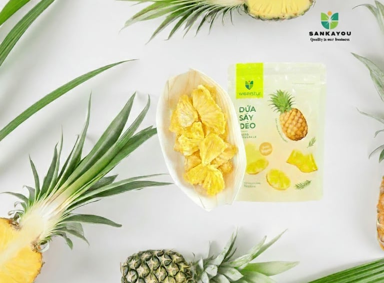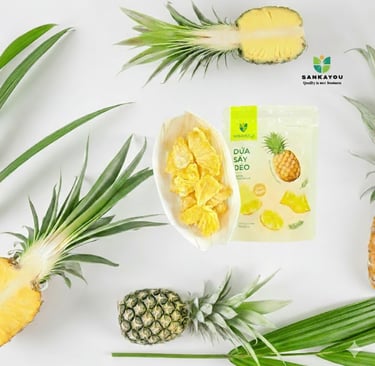 Made from freshly harvested Vietnamese pineapples, our soft-dried pineapple delivers the perfect harmony of natural sweetness, pleasant tartness, and chewy texture. Produced with modern drying technology, it retains the fruit’s bright color, tropical aroma, and nutritional value—without added preservatives